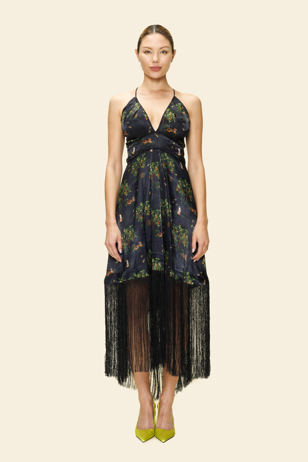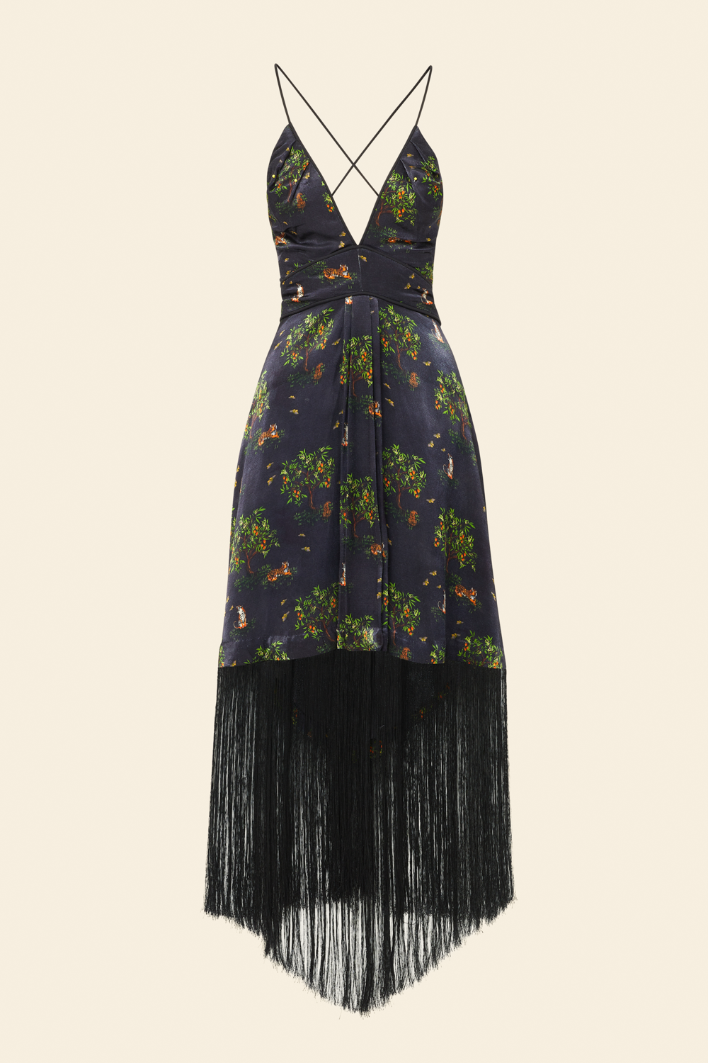 The Black Shanti Tiger Backless Fringe Dress
